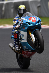 上周在联合测试中突破自前的最佳记录时间,保持好状态的情况下参加了冈山战,FP1道路有点潮湿,但是为了确认新型雨用后轮,集中精力的周转的5号选手。但是转到路面干的FP2后,有一点破坏了节奏,得到了比最佳时间相差0.7秒最终结果。